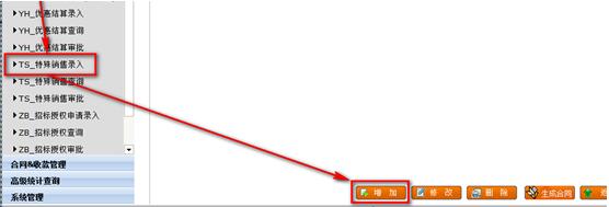 登錄銷管系統(tǒng)http://upsale.yonyou.com/ 在左樹分類【審批業(yè)務(wù)】下,點(diǎn)擊選擇【特殊銷售錄入】。在打開的右側(cè)區(qū)域點(diǎn)擊按鈕【增加】,如下圖。