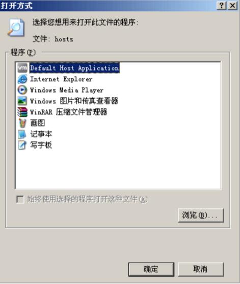 (3)右擊“HOSTS”選擇“打開方式”,選擇“記事本”,點擊“確定”用記事本打開HOSTS文件;